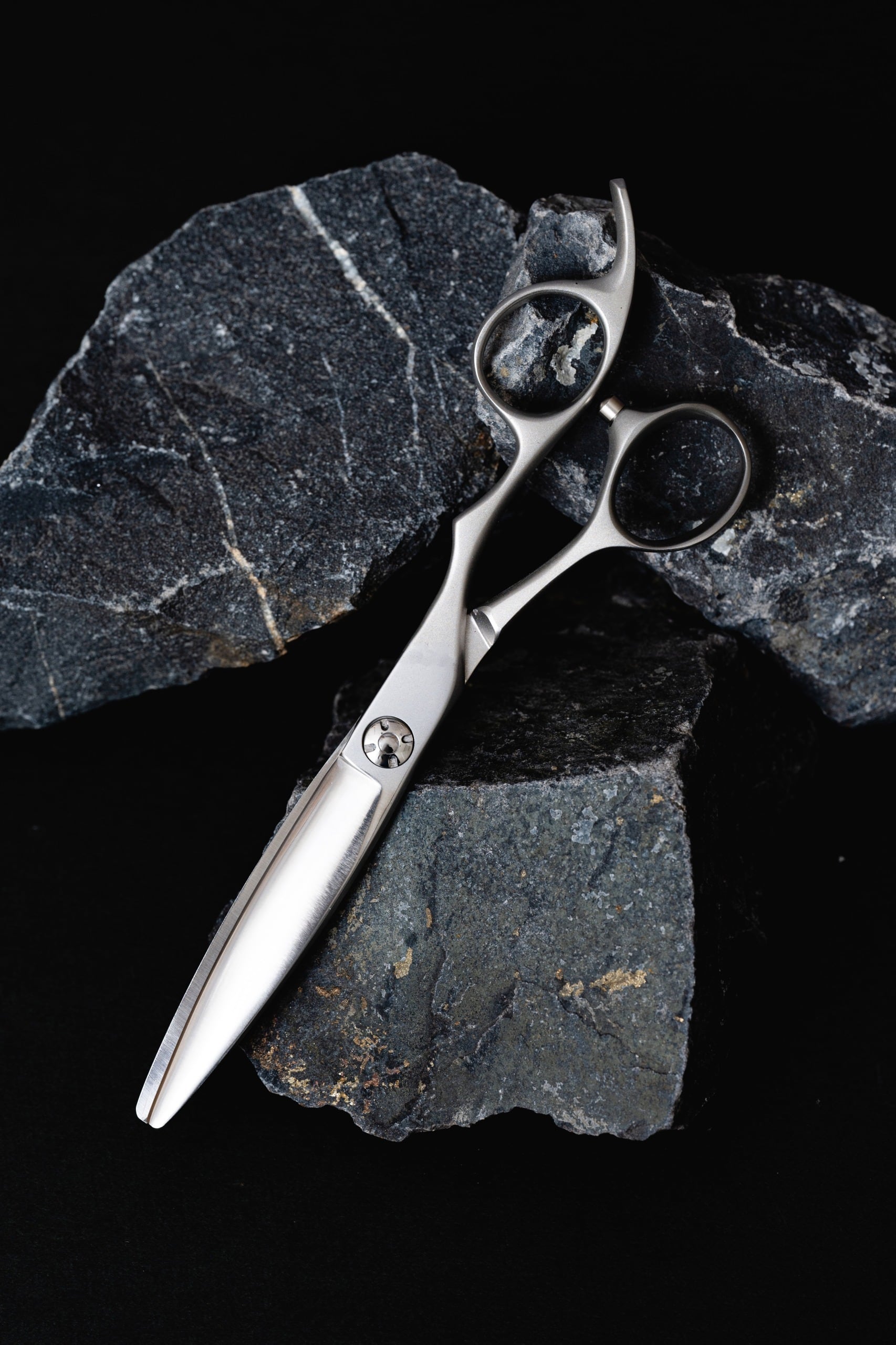 nex the salon村田勝利様と 美容業界の限界に挑戦するべく 長い時間をかけ共同開発したドライ用シザー Heracles.D 【グラデーションマット加工】タイプです。 最高ランクの素材を使用しております。 圧倒的なクオリティと価格を実現したモデル。 グラデーションマット加工とは ハンドルと刃に部位事で異なる加工にした一丁です。 角度によって刃の見え方が変わる様に しております。 柔らかくも正確に切れる為 スライドカットとチョップカット 両方ともにお使い頂けます。